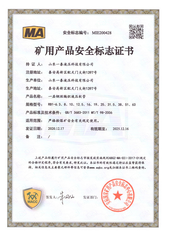 山東一泰液壓科技有限公司,坐落于山東省泰安市國(guó)家高新技術(shù)產(chǎn)業(yè)開發(fā)區(qū)配天門大街1397號(hào),總占地面積6萬6千多平方米,總建筑面積4萬多平方米。公司注冊(cè)資金7500萬元,資產(chǎn)值3億元。公司始終專注于超高壓石油鉆探軟管、柔性節(jié)流壓井軟管、井控高壓耐火軟管總成、高端機(jī)械軟管、以及礦用液壓管體等配套產(chǎn)品的研發(fā)和生產(chǎn)。產(chǎn)品廣泛用于陸地和海洋石油鉆井、勘探、開采、輸送等領(lǐng)域;同時(shí)還為軍用系列、大型船舶系列提供了優(yōu)質(zhì)產(chǎn)品的供應(yīng)保障和信任服務(wù)。